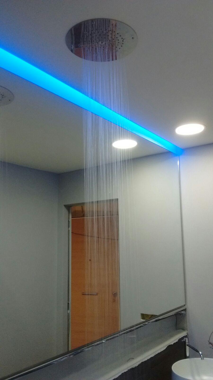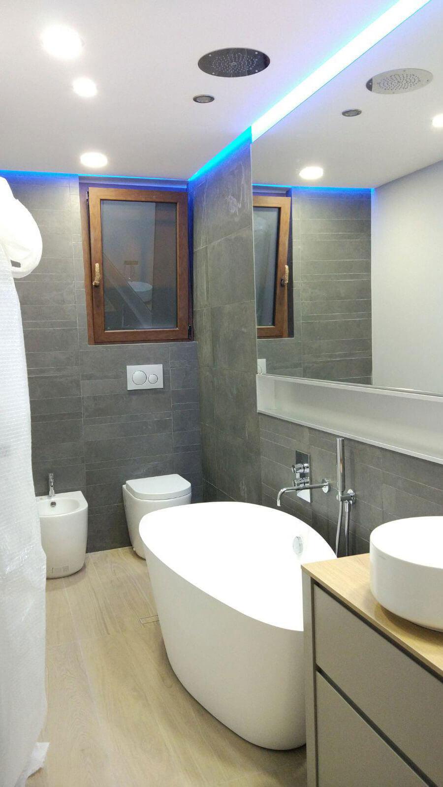 供應:Gessi Via Tortona 水龍頭、Bossini 天花板淋浴頭、Abk Docks 灰色塗層、Compab 家具